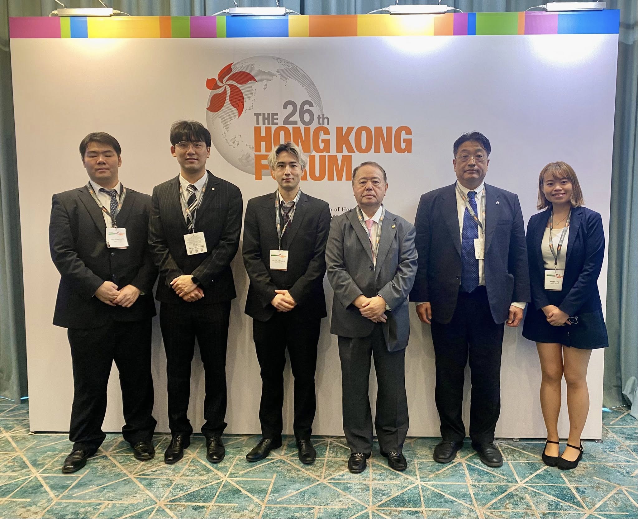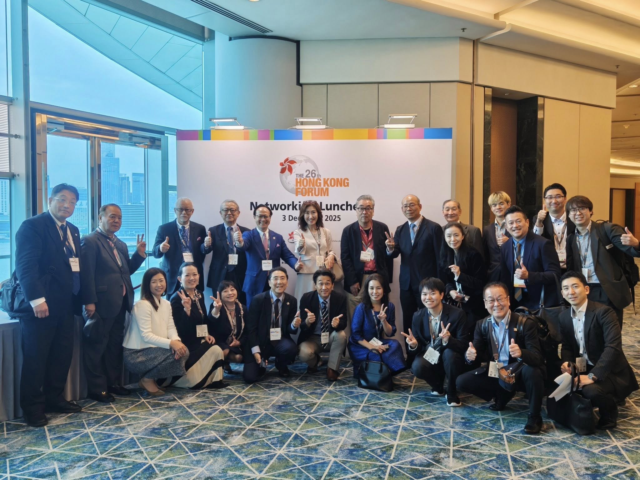 2025年12月2日(火)・3日(水)の2日間、香港・湾仔(ワンツァイ)の香港コンベンション&エキシビション・センター(HKCEC)にて第26回「香港フォーラム」(共催:香港貿易発展局(HKTDC) / 世界香港ビジネス協会連盟)が開催されました。宮城日本香港協会からは、小野寺初正会長を筆頭として、株式会社ハチヨウ 専務取締役・清水勝之氏、学生青年部長 Peggy Tang を含む計6名が参加いたしました。