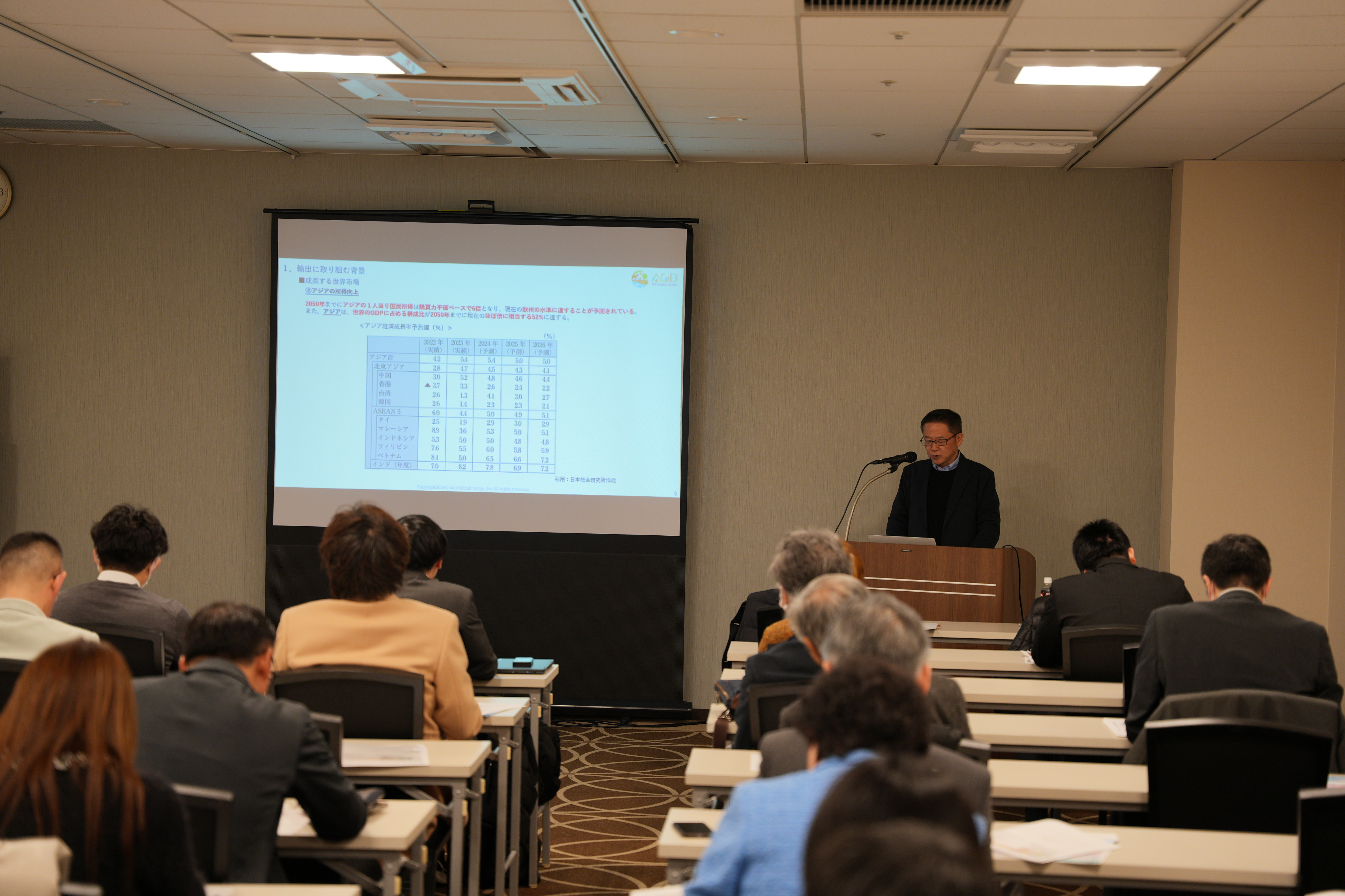 講演では、アジアにおける日本食市場の成長やインバウンド需要の拡大、現地消費者のライフスタイルの変化など、最新の市場動向を具体的な事例とともにご紹介いただきました。また、ブランド力の重要性や企業連携の必要性、訪日時の食体験を活用した海外展開など、日本企業が海外市場で成功するためのポイントについても分かりやすく解説いただき、参加者から高い関心が寄せられました。