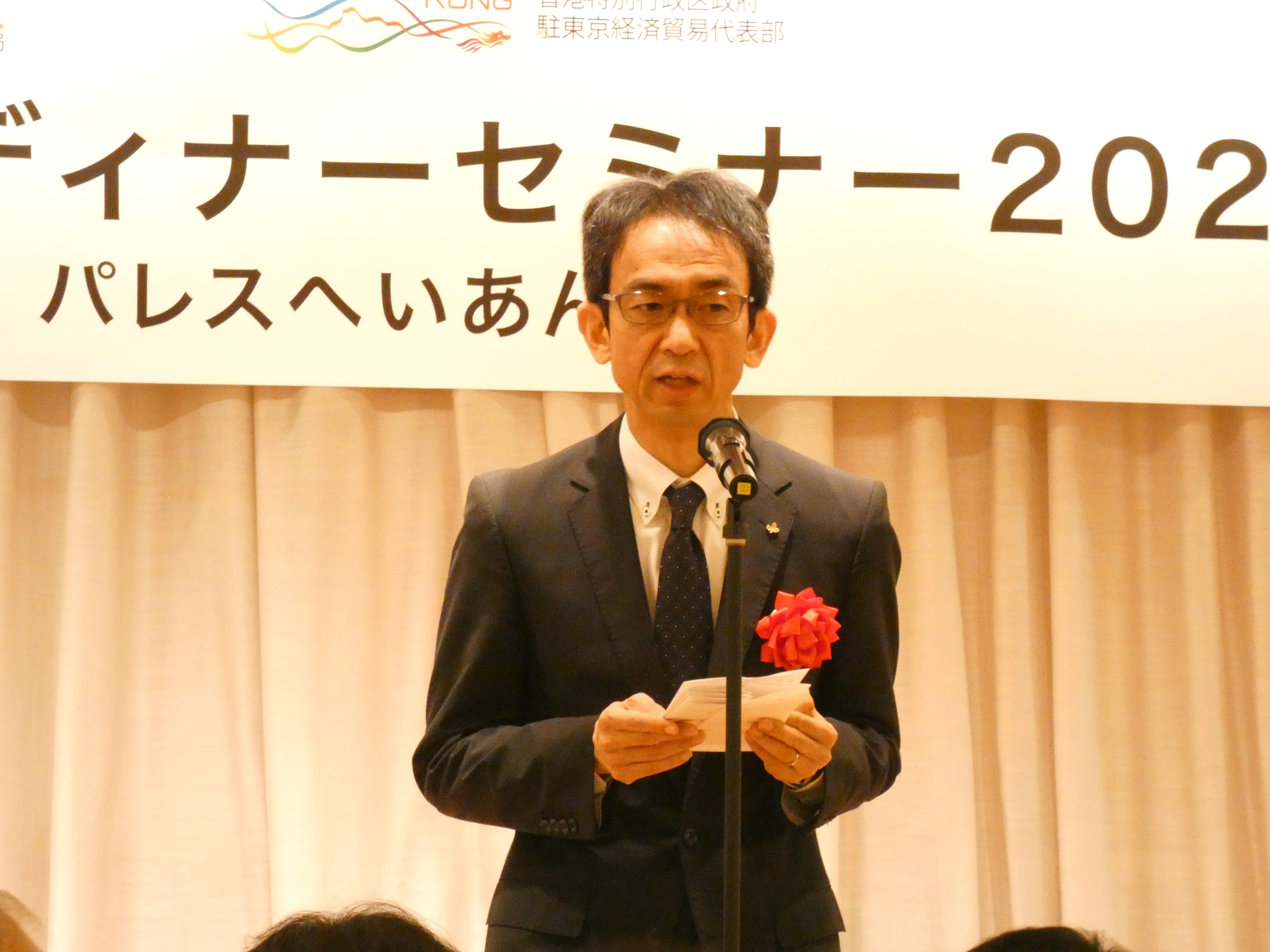香港貿易発展局首席代表のベンジャミン・ヤウ氏の挨拶で幕を開け、来賓として宮城県経済商工観光部副部長の武内浩行氏、仙台市経済局次長の柳津英敬氏、仙台市産業振興事業団経営支援部長の関憲二郎氏の御三方から挨拶をいただいた後、講演に入りました。