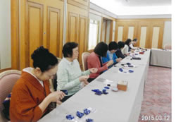 暑さも盛りとなった仙台ですが、7月5日(木)、宮城日本香港協会事務局 会議室スペースに於いて、女性部会主催による「魅知国定席 花座ができるまで」を開催しました。