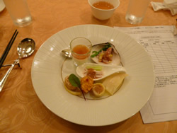 参加者のみなさんは、さすが料理人が多いですね。役割分担をしながら、和気藹々と仲良く、手際よく、そして料理しながらも分からないときはすぐ先生のところへ、この辺が大事ですね、あっという間にできてしまいました。