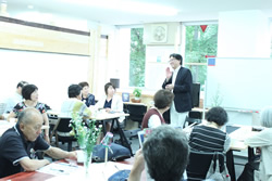 白津様のユーモアたっぷりのお話に皆さん引き込まれていました。 |